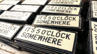 TEQUILA TIME Sign. Approximately 4.5" x 18.5" with wire hanger. Color options available on next screen.